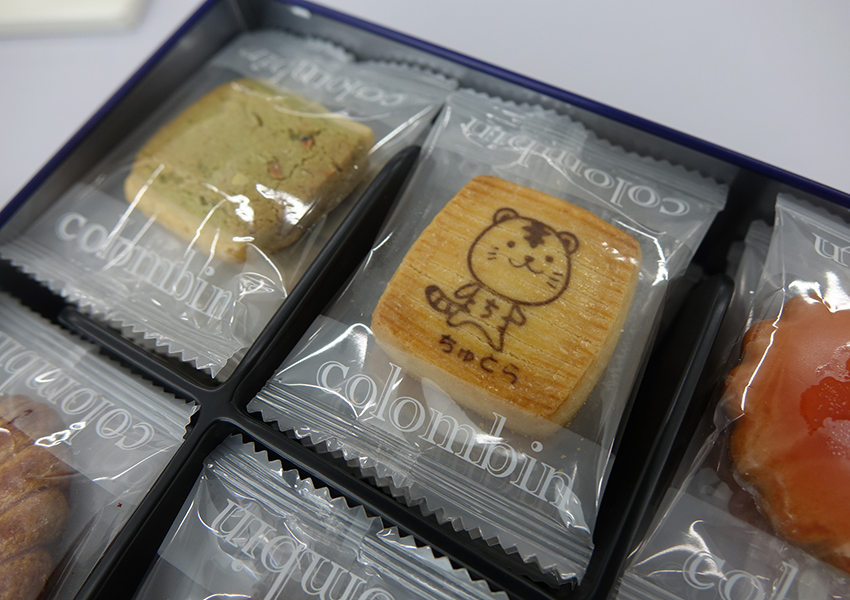 中部大学のロゴ、ちゅとらのイラスト入りクッキー。洋菓子の銘店『コロンバン』とのコラボ。1,600円と2,800円の2種類があります。(1,600円は受注販売となります。詳しくはお問い合せください)