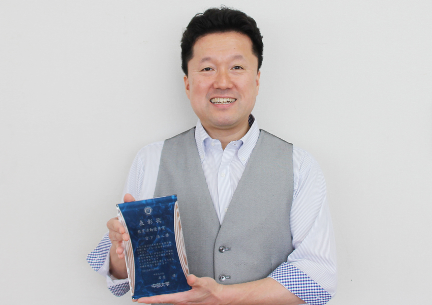中部大学に着任してちょうど10年が経ちました。学生時代には自分が教職に就くなどとは全く想像しておらず、塾や家庭教師のアルバイトすらしたことがありませんでした。しかし、幸いにも大学教員としての職を得て、日々授業運営に四苦八苦しながら、学生さんにわかったと実感してもらえる授業を目指して参りました。私がこのような賞をいただけましたのも、これまでご指導いただきました先生方と私の授業を受講してともに学んでくれた学生さん達のお陰であり、この場をお借りして感謝申し上げます。