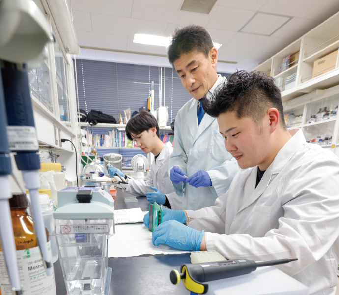 近年注目されるアミノ酸の研究の中でも特に重要とされるBCAAの探究に取り組む下村吉治研究室です。アミノ酸関連の大手企業との共同研究の実績もあります。