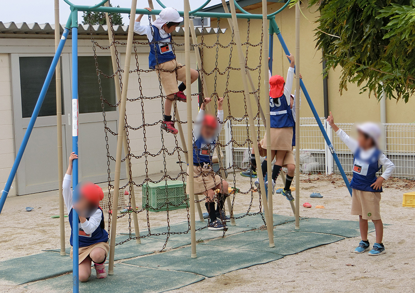 研究では幼児に名札型ウェアラブルセンサーを入れたビブスを着用してもらって測定しました。すると運動が得意な子と不得意な子では、遊んだ固定遊具や施設が異なる傾向にあり、遊びの嗜好が異なることが見えてきました。また、多人数で遊んでいる時よりも少人数で遊んでいる時の方が幼児一人一人の動きが活発になり、転落などの事故のリスクが高いことも分かりました。幼児の行動が計測・可視化できるようになることで、今後の保育・教育現場の負担軽減や事故防止に貢献できればと思っています」