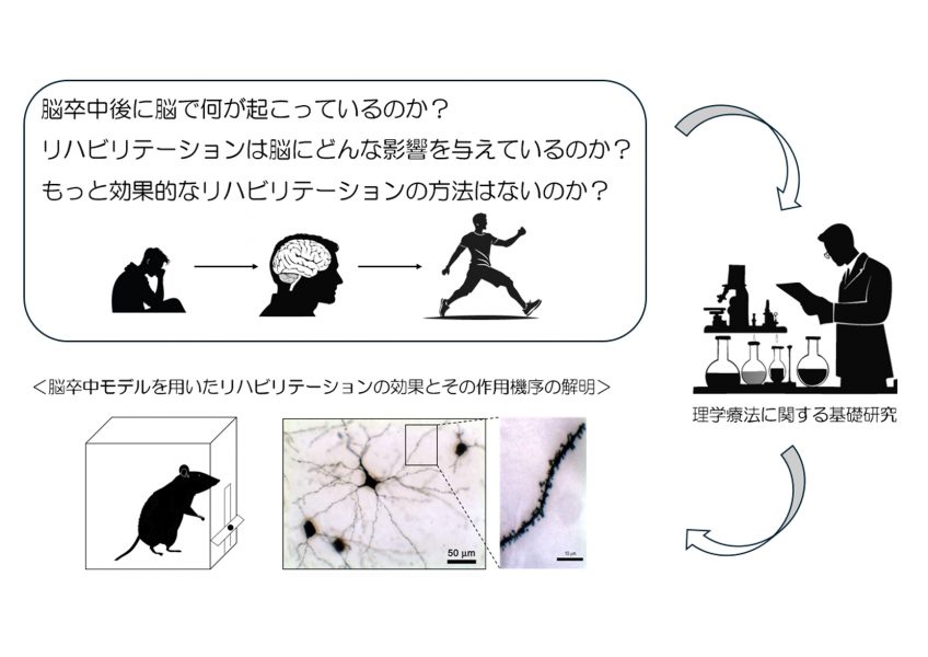 理学療法士として現場で多くの患者さんの症状を見てきた経験もあり、“リハビリテーションは脳にどんな影響を与えるのか”“どのように脳を変化させるのか”“もっと効果的なリハビリテーションの方法はないのか”を探るべく、私はこの分野の基礎研究に取り組んでいます」