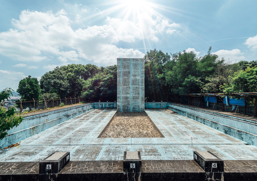 旧高校のプールの床を切り出し垂直に立てた作品。