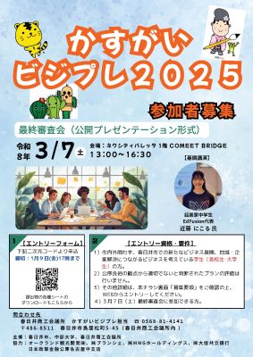 春日井市・春日井商工会議所・中部大学が主催する、春日井市の地域経済の活性化や社会課題の解決のため募集したビジネスプランの公開プレゼンテーションおよびコンテストです。