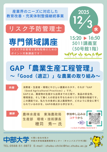 この講座では、私たちの食卓に並ぶ農産物が、どのように安全に育てられているのかを、GAPの視点から学びます。