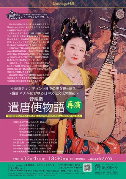 This musical theater production recreates the city of Chang’an where Abe no Nakamaro lived, as well as the culture of the Western Market, which was influenced by the Western regions of ancient China, and the court culture of the Tang Dynasty, which he visited at the invitation of Emperor Xuanzong and Yang Guifei. Using the pipa and ruanxian, which are representative instruments of Tang music, along with magnificent Tang-era costumes, faithfully reconstructed based on historical sources, the audience can enjoy the splendor of Tang culture from 1,300 years ago.