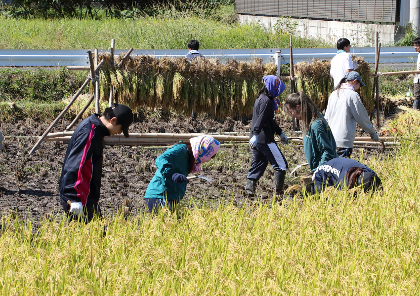 管理栄養科学専攻では、6月に1年生が植えた稲を、2年生が稲刈りし、3年次の給食実習で使用します。地産地消ですね。