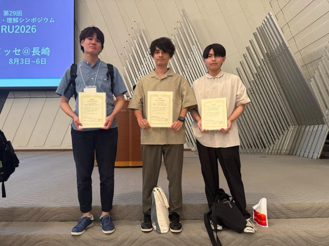 7月29日〜8月1日に京都にて開催された画像の認識・理解シンポジウムMIRU2025において藤吉研究室の藤吉零さん(大学院工学研究科ロボット理工学専攻博士前期課程1年)と岡本直樹さん(大学院工学研究科ロボット理工学専攻博士後期課程在籍)が以下を受賞しました。受賞項目や発表した論文のタイトル、内容は以下の通りです。