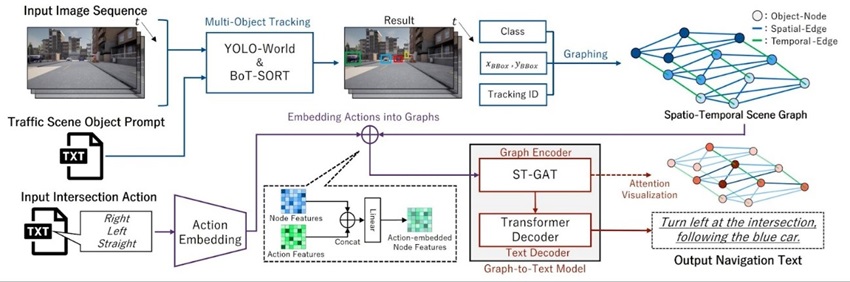 - 車載カメラ映像から周辺環境を「グラフ構造」として理解し、人間のように自然な言葉で案内するナビゲーションAIを開発。