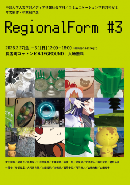 中部大学人文学部メディア情報社会学科・河村ゼミの年次制作・卒業制作展 RegionalForm#3を開催します。