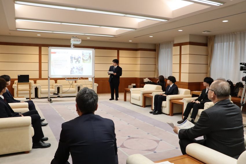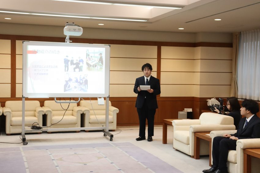 認定証交付式では、代表学生の活動報告が行われ、その後、石黒春日井市長より対象学生一人一人に認定証が交付されました。