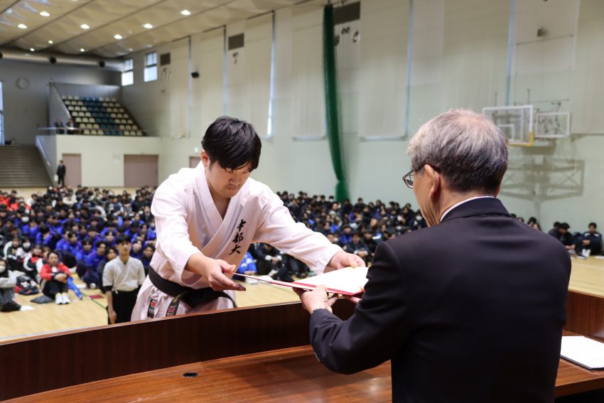 全国大会・各種コンクールなどへの出場や入賞、長年にわたる活動やイベント開催など、功績・努力が認められた各クラブ団体・個人に対し、中部大学長・同窓会長が表彰します。毎年クラブに所属する学生が一堂に会し、表彰式を盛大に行っています。