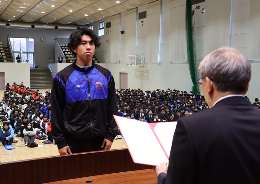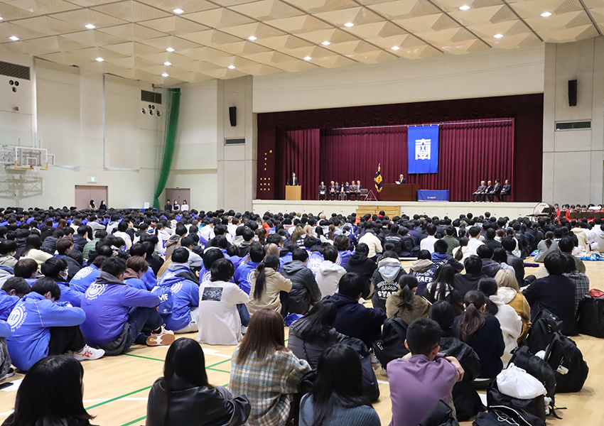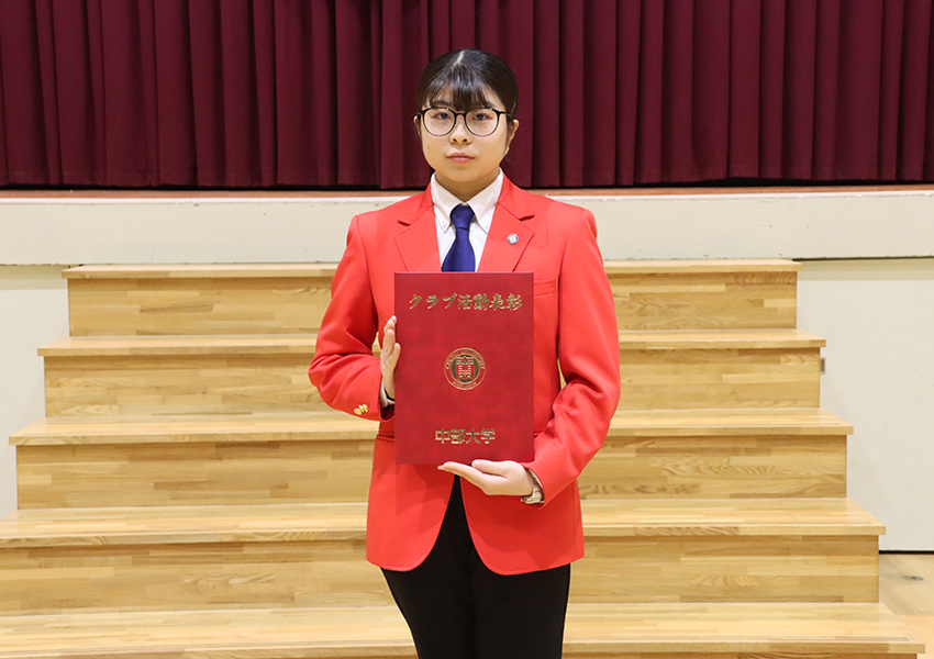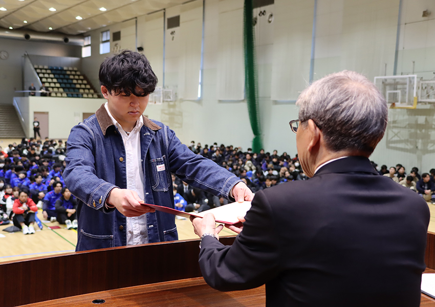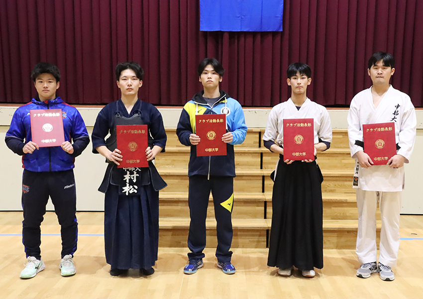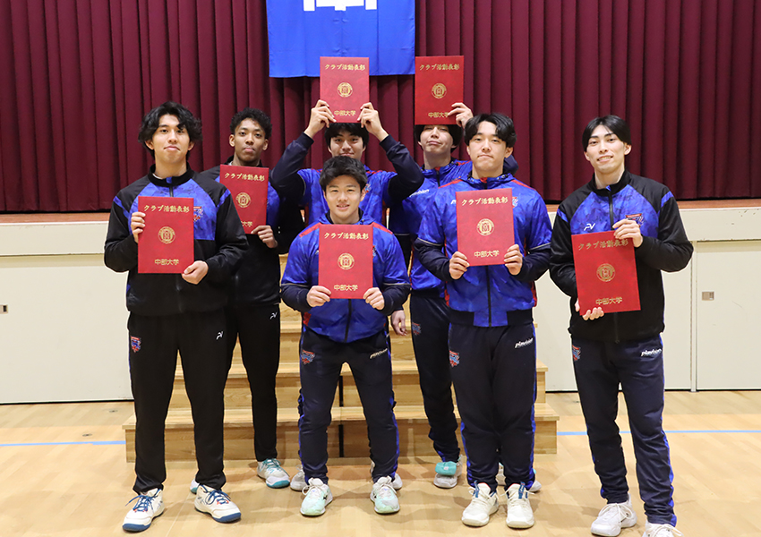 中部大学クラブ活動表彰授賞式は、毎年クラブ所属の学生全員を集めて盛大に行われます。その年に功績を上げたクラブ、努力したクラブは学長・同窓会長より表彰されます。