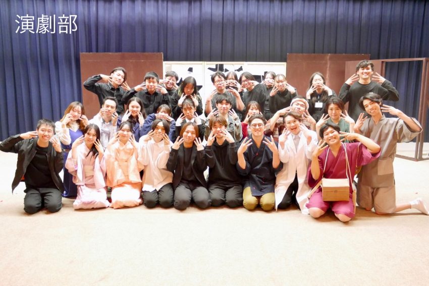 演劇部 劇団「とらの穴」では、年3回公演を行っています。これらの公演を通して色々な経験を得ることができます。演劇と言えば役者ですよね!将来表舞台に立ちたい、学生生活で表に出てみたいなど、どんな理由でも歓迎します!また、役者だけでなく音響や照明など舞台を一緒に作っていく裏方の役職希望も大歓迎です。動きやすい服装であればその日に練習メニューを体験することもできます。「話を聞いてみたい」という方や「とりあえず見るだけ」という方も全く問題ありませんので、是非一度お越しください!私たち演劇部の魅力は、全て自分たちの手で一から舞台を作り上げている所です。部員全員が一丸となって創り出す舞台は他の部活では体験することはできません。 公演だけでなく打ち上げや部活ならではの行事でも全力で楽しんでいます。 学生生活が充実すること間違いなしです! あなたも劇団「とらの穴」の一員になりませんか?